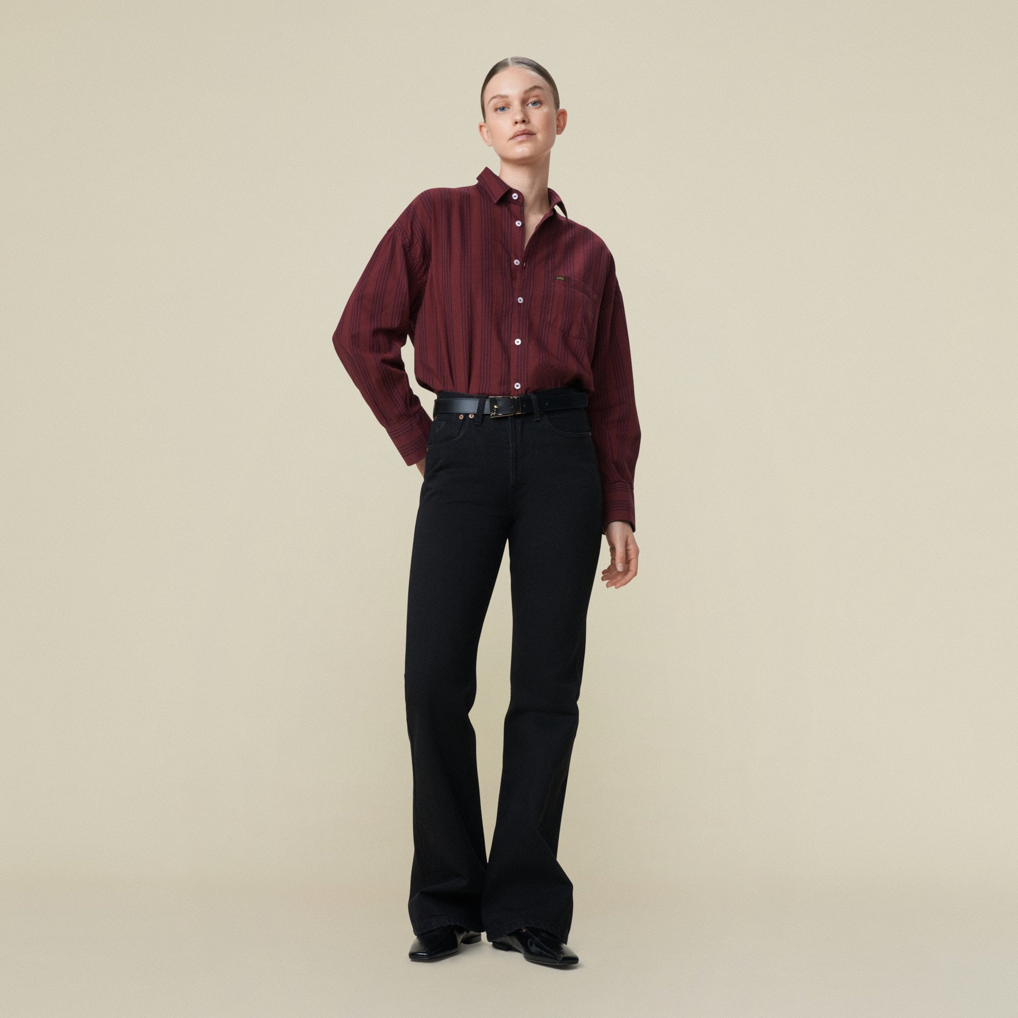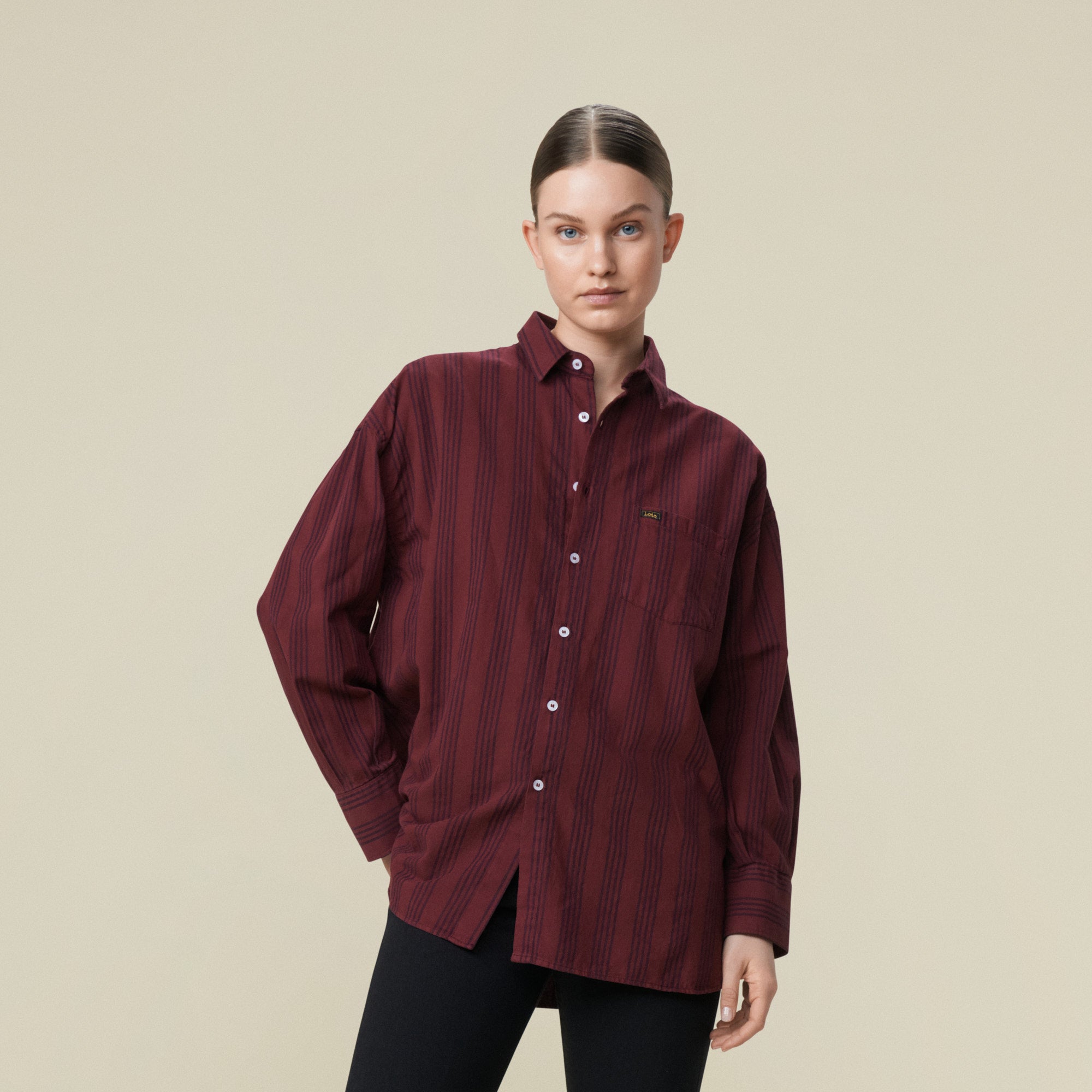 The Chelsea is our oversized striped button-up shirt with chest pocket.