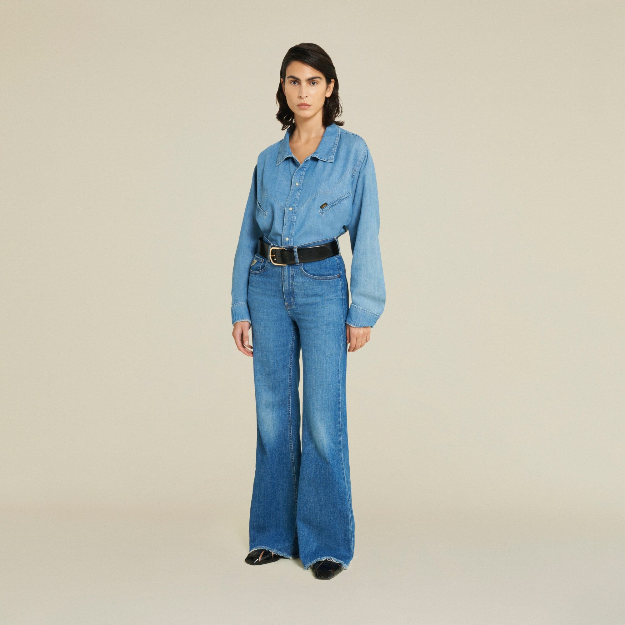 La Bandido è la nostra camicia con bottoni di ispirazione western, caratterizzata da tasche frontali appariscenti e fodera leggera. In classico tessuto di cotone blu.