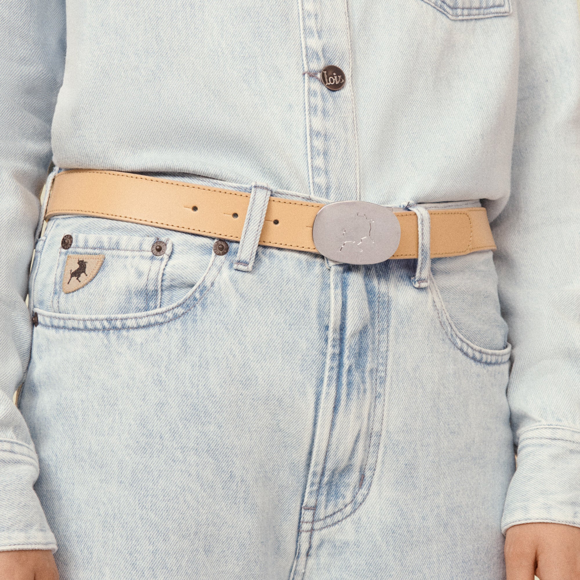 - Golden buckle with bull debossing