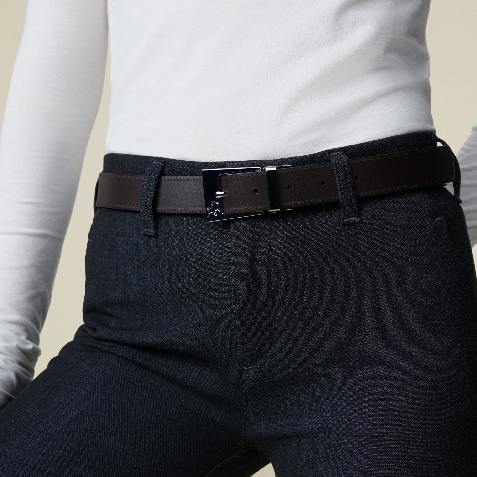 Reversible leather belt with signature bull emblem.