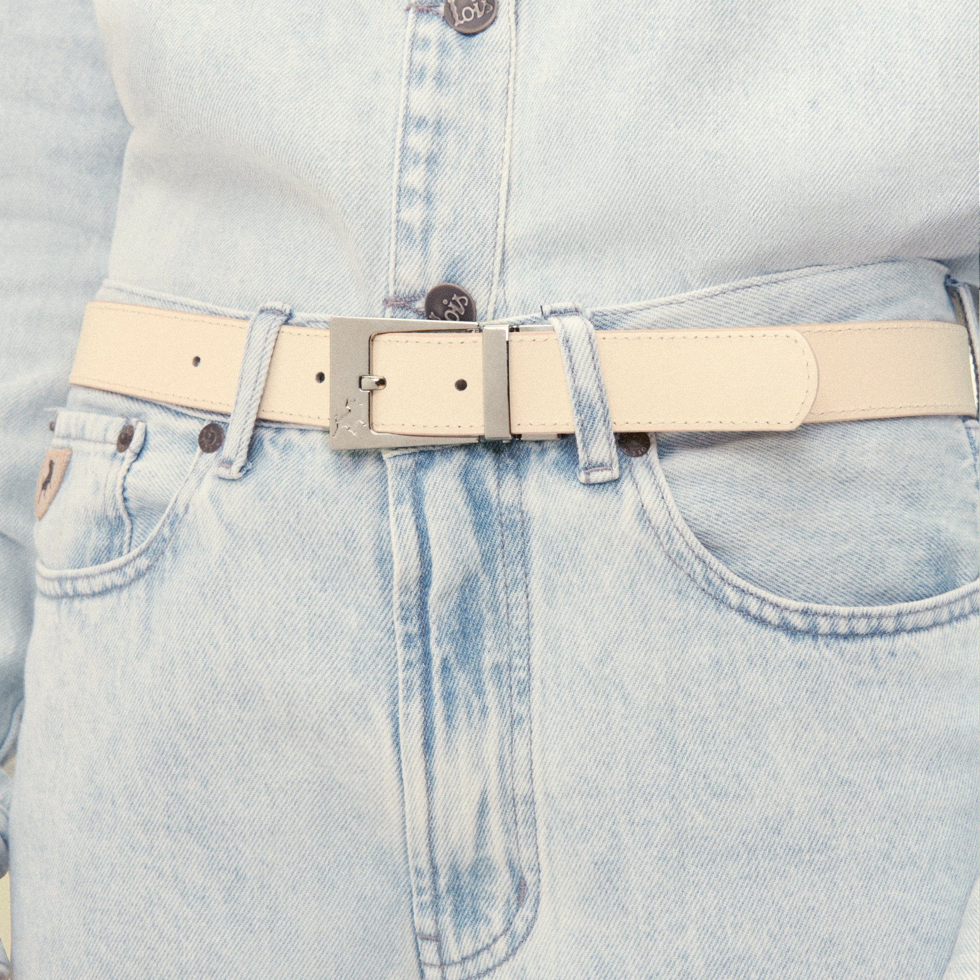 - Silver buckle with bull debossing